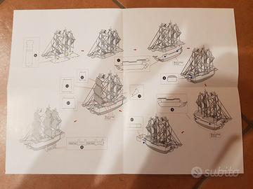La dimensione dei due foglietti è 11 cm x 11 cm ognuna (quindi immagino che la nave da costruire sia più piccola).