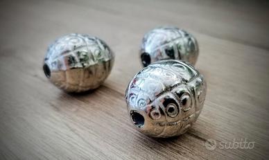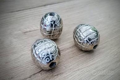 - 3 perle lavorate color argento a 0,25 euro l'una. Totale per tutte: € 0,75.