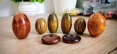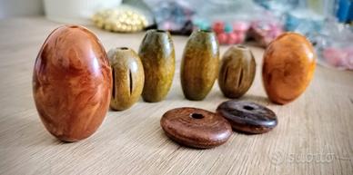 - 8 perle oversize in legno e resina. Ottime per collane etniche, africane, orientali.