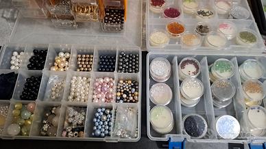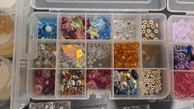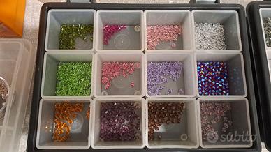 Causa inutilizzo, vendo in blocco biconi/perle/sfere di vario genere e misura in Swarovsky. Minuteria varia e perline di vario tipo. Prezzo trattabile.