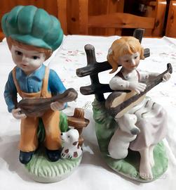 Vendo statuine di seconda mano in buonissimo stato, vintage anni 70, nella foto 6 evidenziati i difetti di tre statuine.