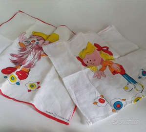 In più come omaggio due fazzoletti vintage con i personaggi raffigurati tra cui uno ingiallito col tempo.