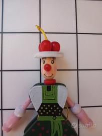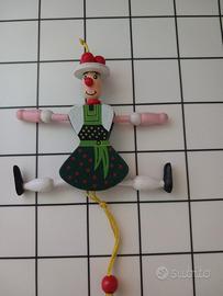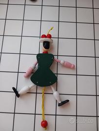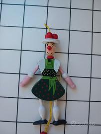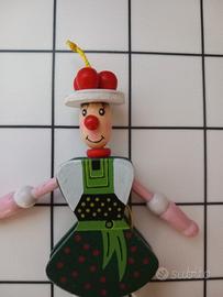PERSONAGGIO IN LEGNO DIPINTO A MANO CM 9X14X6 TIRANDO UN CORDINO È POSSIBILE MUOVERE GAMBE E BRACCIA PERFETTO.
