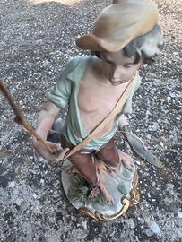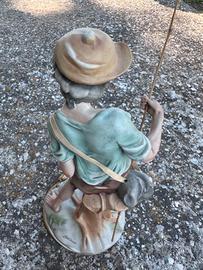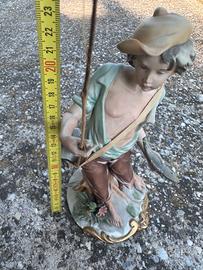 Bellissima statua in porcellana Capodimonte (firmata o attribuita Mollica), raffigurante un giovane pescatore con canna da pesca e pesce, decorazione dipinta a mano.