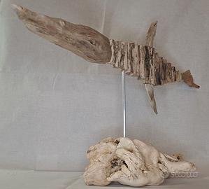 Pesce artigianale in legno galleggiante (legno recuperato dal mare dove ha galleggiato e si è invecchiato per mesi o anni prima di arrivare in spiaggia). É appoggiato su una base in legno vecchio recuperato dal mare per mezzo di uno stelo di alluminio. Le misure sono altezza 35 cm, larghezza 60 cm. Se abitate nelle vicinanze e volete venire a vedere di persona l’oggetto che vi interessa ed anche altri (senza nessun impegno da parte vostra) siete i benvenuti, scrivete un messaggio sulla chat tramite il pulstante “Contatta” per fissare un appuntamento. Per favore non chiedetemi il numero di telefono: è sufficiente che ci scriviamo nella chat, è il modo più sicuro sia per l’acquirente che per il venditore.