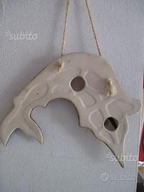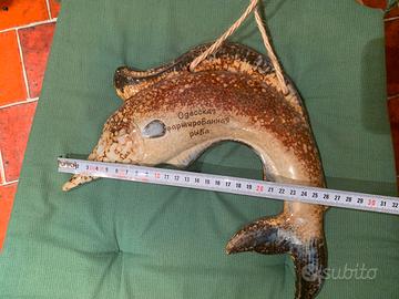 Decoro da parete in ceramica dipinta a forma di pesce marlin in perfette condizioni.