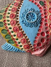 Stupendo Pesce tropicale decorativo ceramica spagnola artigianato vintage , dipinto a mano con colori vivaci, finitura opaca. decorazione murale con buco per appendere su parete