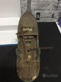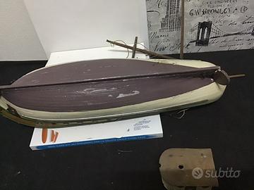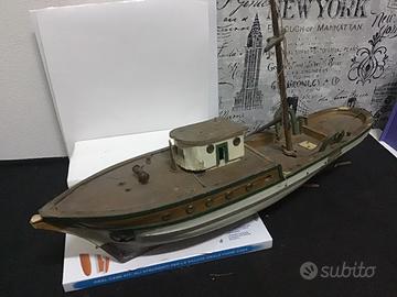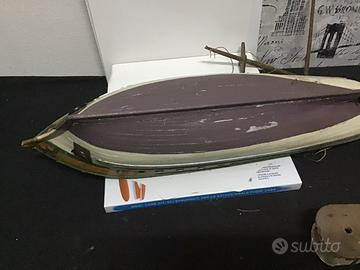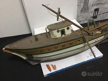 Bellissimo peschereccio in legno cm 58 da sistemare, vintage con relativi pezzi ed accessori