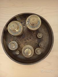 Pesi antichi per bilancia con piatto bilancia