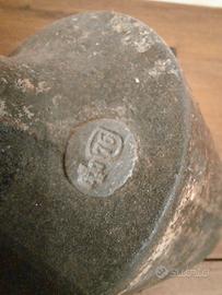 Vecchio peso da 5 kg con manico a pomello. PUNZONATO. Ideale per collezionisti o come elemento decorativo. Segni del tempo, finitura grezza e vissuta.