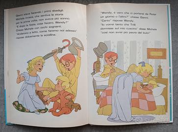 Disney, pubblicato da Mondadori. Questo libro fa parte della collana "Imparo a leggere con Topolino". La copertina raffigura Peter Pan, Capitan Uncino e altri personaggi iconici della storia, come Giglio Tigrato e un pirata sulla barca, oltre al coccodrillo che ha mangiato la mano di Uncino.