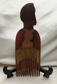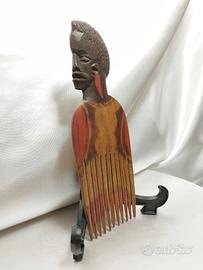 Pettine per capelli africano in legno intagliato a mano con bella testa dettagliata