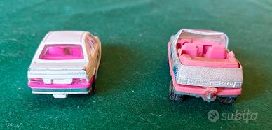 2 - Peugeot 205 GTi Cabriolet carrozzeria principalmente bianca metallizzata con interni e finiture arancioni, con portiere e cofano non apribili. Presenta grafiche “splash” blu e arancioni sui lati e sul cofano, scala 1:53, codice prodotto 281/210.