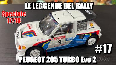 Peugeot 205 turbo 16 EVO2 Juha Kankkunen (AWA Clarion Rally of New Zealand, 1986) Modello in scala 1/18 fa parte delle uscite speciali della collezione “le leggende del rally” Mai stato aperto ancora nel suo imballaggio originale.