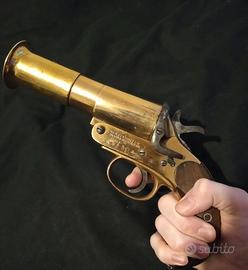 L'oggetto è un pezzo di una lanciarazzi della ditta Webley & Scott del 1915. Un produttore di armi di Birmingham - Inghilterra. L'azienda ha prodotto armi da fuoco dal 1834 al 1979. Produttore: Webley & Scott Ltd. Sede: Londra e Birmingham. data la presenza dei marchi visibili sono marchi di prova britannici (British proof marks), che indicano la conformità agli standard di sicurezza. Oggetto ritrovato in una scatola acquistata in un mercatino delle Pulci a Parigi "L'ULTIMA FOTO E SOLO ESPLICATIVA L'HO TROVATA SU INTERNET NON POSSEGGO L'ARMA SOLO IL PEZZO . Oggetto come da foto