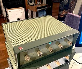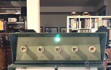Amplificatore mono a valvole anni '60 in ottime condizioni estetiche e non testato. Personalmente non ci ho mai messo le mai e quindi lo vendo come bisognoso di assistenza tecnica per poter funzionare al meglio. L'amplificatore utilizza la circuitazione OTL senza trasformatore d'uscita e necessita di diffusore da 800 ohm. Vendo per riduzione dello stock e non sono interessato a scambi.