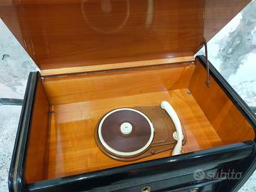 Radio e fono d'epoca Phonola, modello 660, degli anni 1956/1958 funzionante e in ottimo stato. La struttura esterna in legno e la griglia che protegge l'altoparlante frontale sono in ottimo stato di conservazione. La parte elettronica valvolare è perfettamente funzionante.