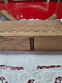 Ecco a voi unapialla a mano in legno vintage, un attrezzo da falegnameria tradizionale utilizzato per lisciare e livellare superfici di legno. Presenta una struttura in legno massiccio con una lama metallica( arrugginita per l' età )regolabile per la rasatura del legno.