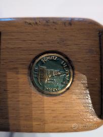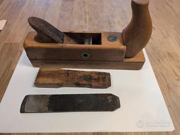 Splendida pialla da falegname professionale a marchio Ulmia (Made in Germany) in legno pregiato. Lo strumento è un pezzo originale d'epoca in ottime condizioni, completo di logo storico incastonato. Perfetta sia per il lavoro professionale sul legno sia come oggetto da collezione o arredamento per botteghe e officine.
