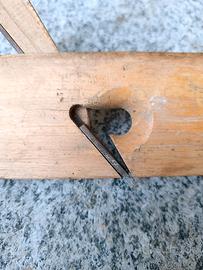 Pialla da falegname in legno, un pezzo d'epoca. - Struttura in legno grezzo. - Lama in metallo. - Manico in legno.