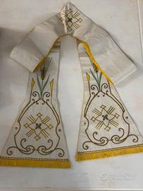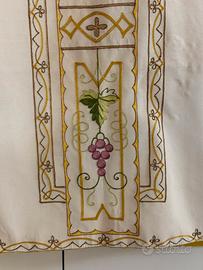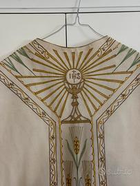 Pianeta in faglia di seta bianca, ricamo a macchina, fodera in seta moirè, completa di stola (Epoca metà 1900) In perfette condizioni, come visibile in foto. (Info e prezzo in privato) #pianeta #seta #artesacra #antiquariato #antichità