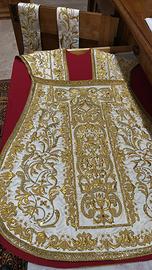 Paramento sacerdotale in seta bianca ricamato in fili oro e fodera in cotone!