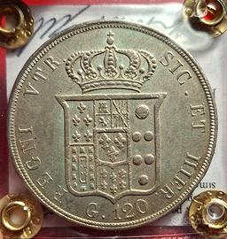 Piastra 120 grana 1848, Ferdinando II, Regno delle Due Sicilie, SPL/SPL+. Per altre foto o informazioni non esitate a contattarmi!