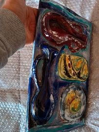 ceramica San Polo anni 50 piastrella in ceramica smaltata con decorazioni policrome lunghezza 37 larghezza 21 pezzo da collezione