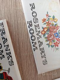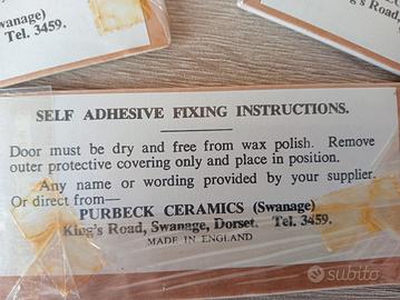 4 piastrelline autoadesive in ceramica con decorazione. Produzione inglese secondo Novecento. Condizioni eccellenti. Dimensioni: 11cm X 5cm. Made in England. Purbeck Ceramics. Vendibili anche separatamente, prezzo variabile.