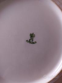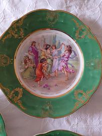 5 piatti da dolce anni '30, porcellana tedesca Alterasser. Due tipi di scene campestri.Diametro di ogni piatto 20 cm.