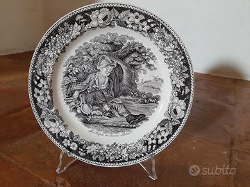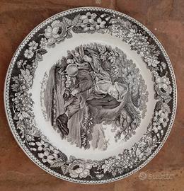 Set 2 piatti antichi Francesi decorativi in ceramica di Louis Lebeuf Monterau diametro cm 21,5 con supporto trasparente