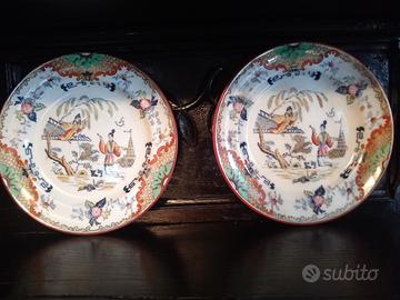 Due antichi piatti olandesi in porcellana della "Pregout & C." serie "Timor" che inizio l'attività nel 1836 ma chiuse i battenti nel 1899 (diametro 19 cm). Oggetti in condizioni soddisfacenti ed il loro prezzo s'intende già compreso di spedizione che sarà postale in espresso con tracciabilita'