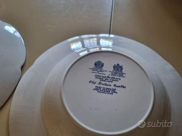 Un piatto piano e un piatto fondo (entrambi 26 cm di diametro) in porcellana inglese, marchio Johnson Brothers England, decorazione "Old Britain Clastles". Ottime condizioni. Presenti solo delle venature riportate in foto. Ritiro in zona, Siracusa o disponibile per spedizione.