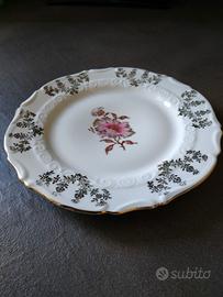 Altro piatto fondo ceramica Pagnossin vintage anni '50, decori piccole rose bordo oro.