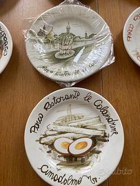 Raccolta di piatti da parete del ristorante Le Calandrine di Cimadolmo ( Treviso) realizzati per varie serate dell'asparago bianco di Cimadolmo e piatto celebrativo del predetto Ristorante