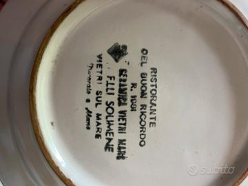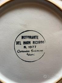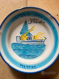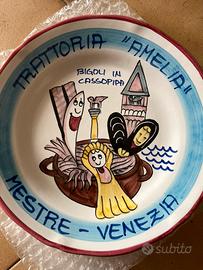 •Ristorante: Trattoria dall’Amelia – Mestre (VE) •Produttore: Ceramica Solimene Vietri •Anno: 1998 Bigoli in cassopipa •Anno: 1982 seppioline alla veneziana •Anno 1977 spiedini dell’Adriatico Prezzo per piatto, vendibili singolarmente