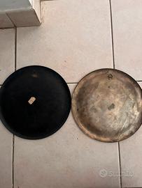 La piastra è realizzata in rame e presenta riquadri in metallo argentato, ottone e metallo grigio.