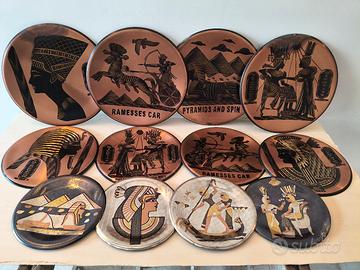 Vendo piatti originali in rame Egiziani decorati e incisi a mano. Raffigurano faraoni piramidi sfingi e vita quotidiana si valutano proposte grazie Francesco