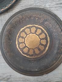 Piatti provenienti dall' Egitto,in metallo decorato,1 diametro 25 gli altri 2 diametro 22.