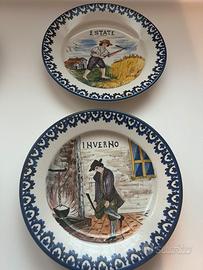 Piatti in ceramica, la Contea di Bassano del Grappa, dipinti a mano, raffiguaranti le 4 stagioni.