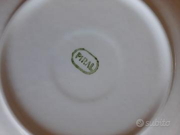 Set Piatti in ceramica con Navi Storiche Marca Piral S4P. Colori: Blue su fondo bianco. Gruppo di 4 piatti policromi (blue su bianco) con figure di velieri. Precisamente mi sono rimasti: