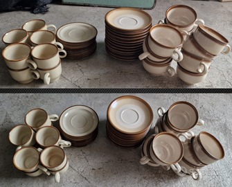 Servizio da 6 tognana bordo viola a fiori 40 euro,servizio da 12 sempre tognana per un totale di 56 pezzi,nessun piatto segnato o sbeccato,pari a nuovo a 130 euro e tazzine da caffè in porcellana polacca da 10 con tazzine da the da 12 tutto per 50 euro,vendibili anche separatamente,spedizione da 12 euro con sda consegna in luogo da concordare