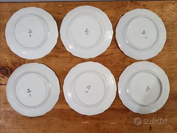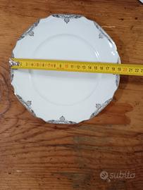 Lotto composto da 6 piattini da dolce in porcellana bianca, con decorazioni sul bordo color grigio. Marchiati Bavaria W 156 in buone condizioni senza sbeccature.