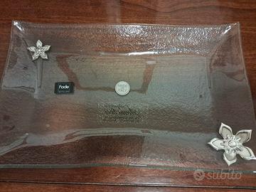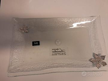 Piattino/vassoietto di vetro tipo bomboniera decorato con fiori in metallo