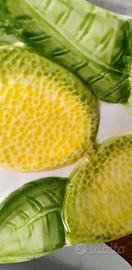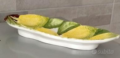 Piatto antico decorativo in ceramica di BASSANO - serie limoni in 3 D - forma di foglia: cm. 26 x 11 - predisposto da appendere