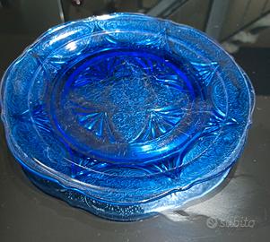 Hazel Atlas Glass Co. Blu cobalto, piatto piano in vetro depressione.