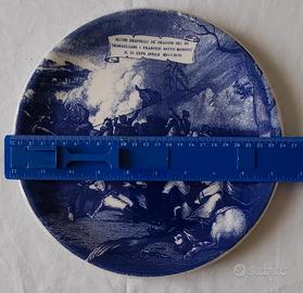 piatto artistico stampato raffigurante scena storica della città di Mondovì (CN) blu scuro nessun difetto, integro no firma/logo