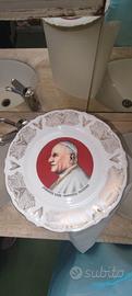 piatto commemorativo in porcellana raffigurantePapa Giovanni XXIII, noto anche come il "Papa Buono". Il piatto presenta un ritratto di profilo del pontefice su uno sfondo rosso circolare, circondato dall'iscrizione latina "JOANNES XXIII - PONTIFEX MAXIMUS".