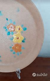 Piatto CE.AS Albisola. Anni 50-60. Gres smaltato con delicato decoro a fiorellini giallo verde acqua, arancio. Diam. Xm. 23. In eccellenti condizioni