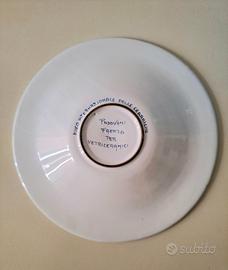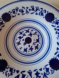 Grande piatto in ceramica bianca e blu firmato Museo (la scritta a mano è Mueo, S, dimenticata!) Internazionale delle Ceramiche - Padovani Faenza, prodotto per Vetriceramici.